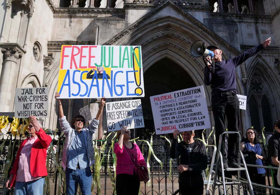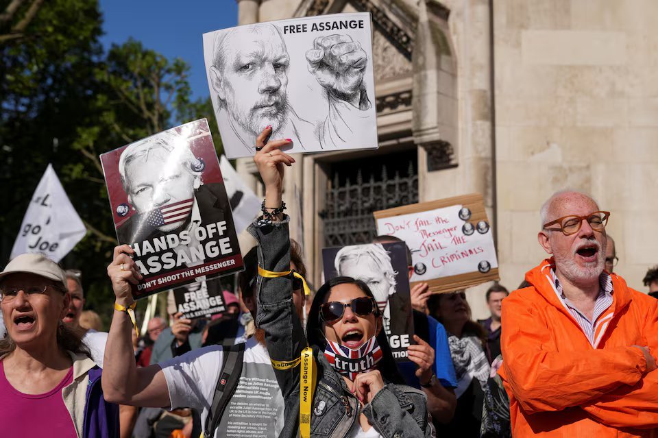 Lajmi shkaktoi brohoritje dhe këngë nga qindra mbështetës që ishin mbledhur jashtë gjykatës duke lidhur shirita të verdhë në kangjellat e hekurta e duke mbajtur pankarta teksa thërrisnin “Liro, liro Julian Assange”.