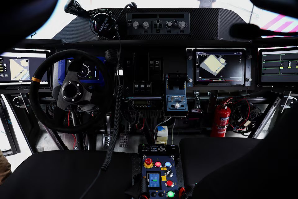 Kamioni elektrik i shndërruar në VivaTech, ngjarja më e madhe e teknologjisë në Evropë, mund të drejtohet normalisht ose mund t’i jepet kontrolli i sistemeve të avionëve. Sensorët mbajnë shënim gjurmët e vijave paralajmëruese dhe pengesave ndërsa kompjuterët në bord e drejtojnë avionin në një vend të caktuar, duke përshpejtuar dhe frenuar sipas nevojës.