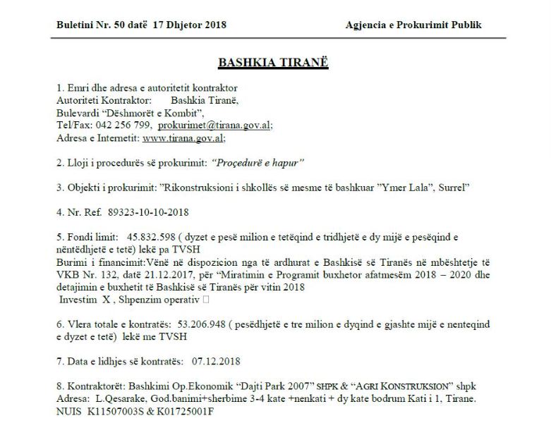 Është pikërisht tenderi me objekt: Rikonstruksioni i shkollës së mesme të bashkuar “Ymer Lala” Surrel.