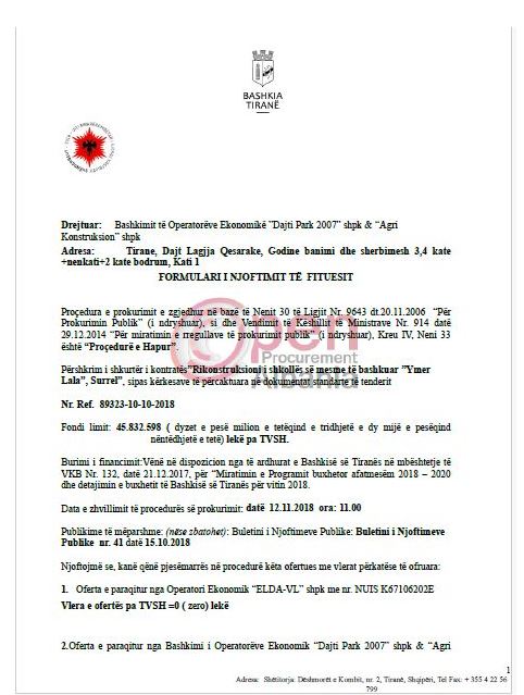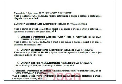 Për këtë procedurë morën pjesë 7 ofertues dhe të gjithë u skualifikuan, përvec fituesit të paracaktuar ku bënte pjesë edhe kompania e Qefalive me 99% të vlerës limit.