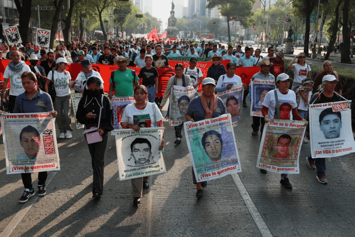 Demonstruesit në Mexico City mbajnë fotografi të studentëve të zhdukur. Gati 43,000 njerëz janë zhdukur gjatë presidencës së López Obrador