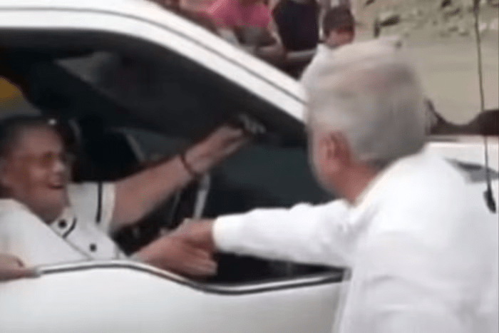 Lopez Obrador shtrëngon duart me nënën e bosit të burgosur të kartelit Sinaloa, Joaquin ‘El Chapo’ Guzman në vitin 2020. Ai e mbrojti aktin si një gjest humanitar ndaj një gruaje të moshuar