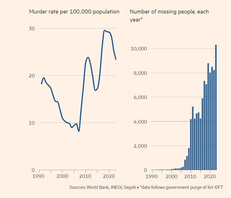 Ekspertët theksojnë se shifrat e vrasjeve nuk përfshijnë numrin rekord të personave të raportuar si të zhdukur, pothuajse 115,000 deri në vitin e kaluar, 43,000 prej të cilëve u zhdukën gjatë presidencës së López Obrador. Ata gjithashtu vënë në dukje se përqindja e “krimeve kundër jetës” të raportuara si vrasje nga pakujdesia ose “krime të tjera” është rritur me rënien e vrasjeve në statistika, duke sugjeruar që vrasjet po riklasifikohen.