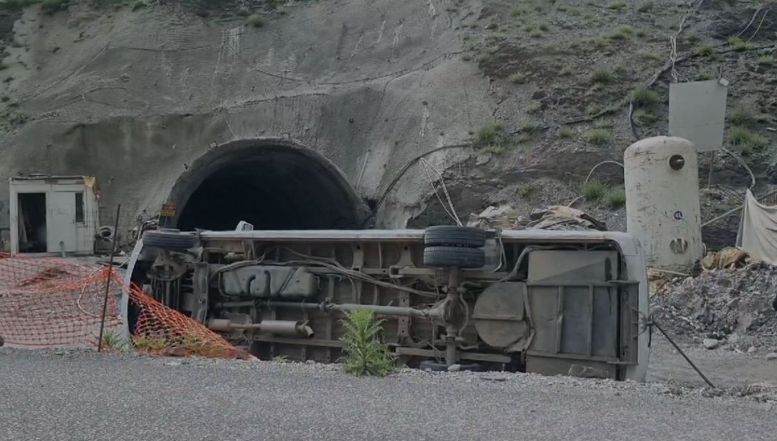 Një furgon i transportit publik i cili po udhëtonte nga Peshkopia në drejtim të Tiranës është përmbysur në hyrje të tnuelit të Murrizit.
