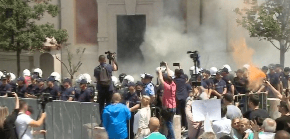 Mes tensioneve të forta të qytetarëve e efektivëve të policisë, drejt godinës u hodhën edhe molotov, teksa protesta u shoqërua edhe me fjalime nga anëtarë të Rithemelimit e qytetarëve.