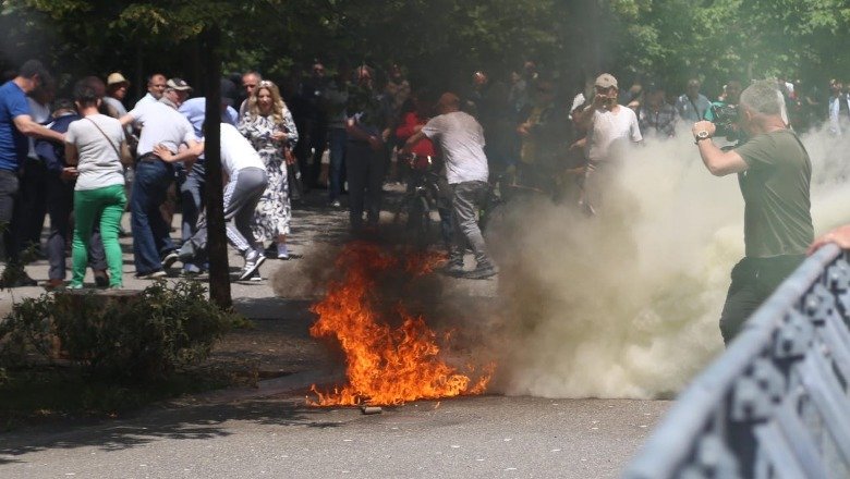 Molotovi përfundoi në afërsi të kordonit të policisë, një zonë ku po kalonin qytetarë, ndërsa ndodheshin edhe gazetarë dhe operatorë të cilëve iu rrezikua jeta.