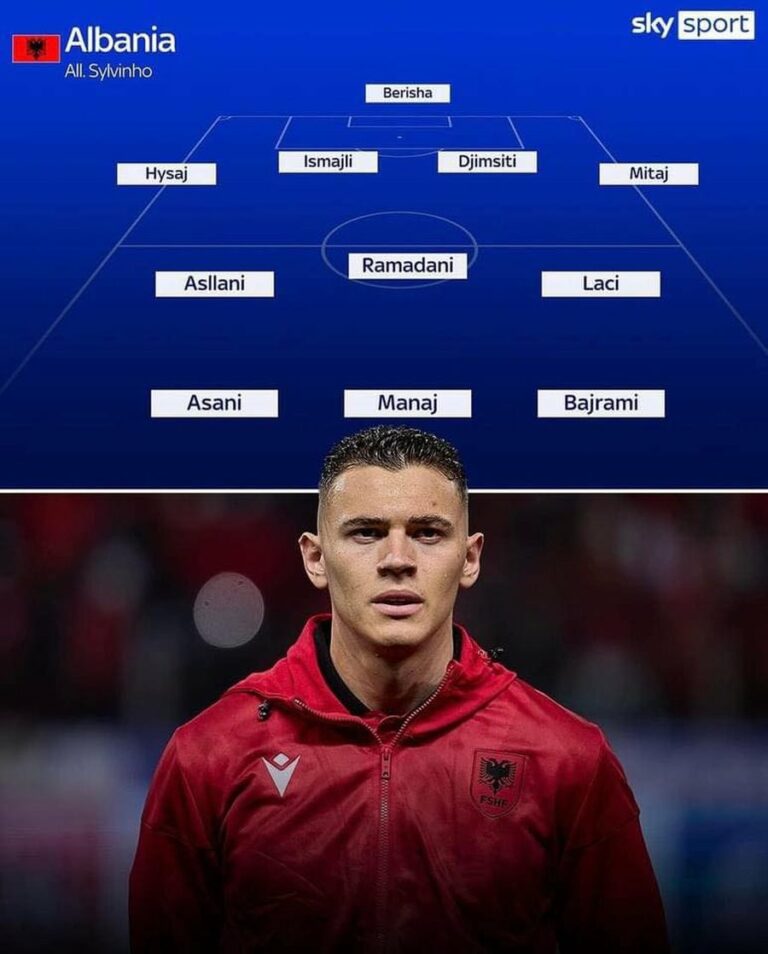 Në kualifikuese luajtëm me një formacion ofensiv 4-2-3-1 që shpeshherë në pjesë të dytë bëhej me 2 sulmues. Në 11-shen e paraqitur nga Sky Sport, Nedim Bajrami mer rolin e sulmuesit të majtë, por bazuar në karakteristikat e tij, do të ketë detyra ndryshe nga ‘natyralët’.