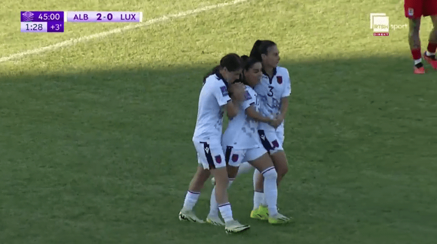 Mesfushorja kuqezi kaloi në avantazh skuadrën në minutën e 29-të ndërsa shifrat i dyfishoi Qëndresa Krasniqi në minutën e 47-të të takimit, e cila asistohet mjaft bukur nga Gjini. Krasniqi hyn brenda zonës, driblon portieren dhe dyfishon rezultatin. 2-0 për Shqipërinë, që futet në avantazh në dhomat e zhveshjes.