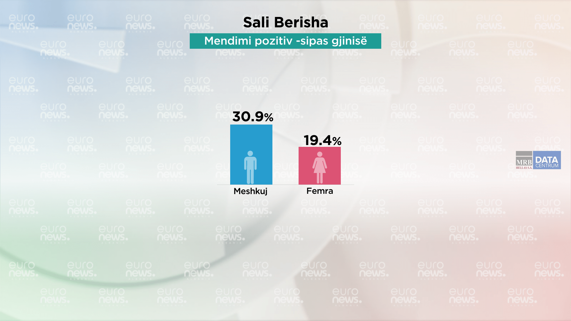 Nga analiza e të dhënave demografike Sali Berisha pëlqehet më shumë nga meshkujt ( 30.9%) sesa nga femrat (19.4 %.)