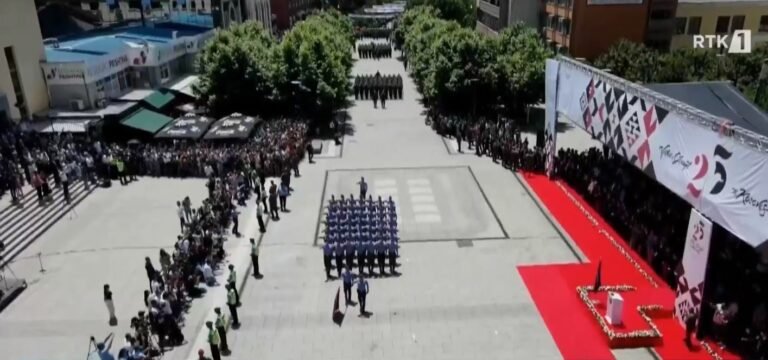 Në mesditë po mbahet ngjarja kryesore, ajo e parakalimit të njësive të Forcës së Sigurisë së Kosovës dhe të Policisë së Kosovës.