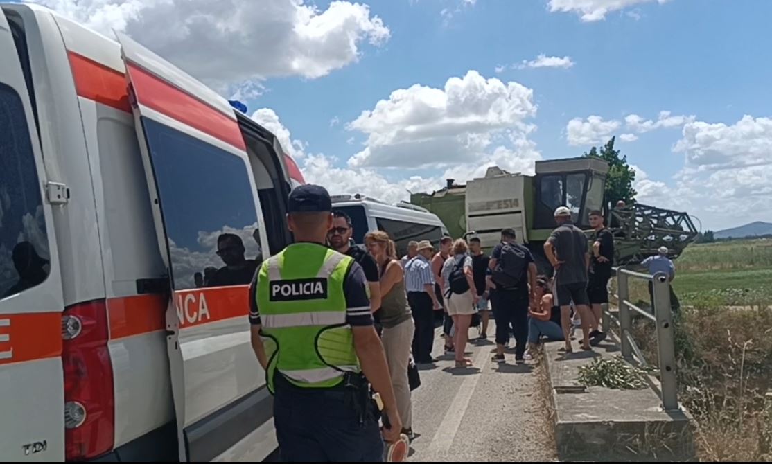 Furgoni i linjës Tiranë-Berat me të cilin udhëtonin turistët dhe qytetarë të tjerë u përplas me autokombajnën.