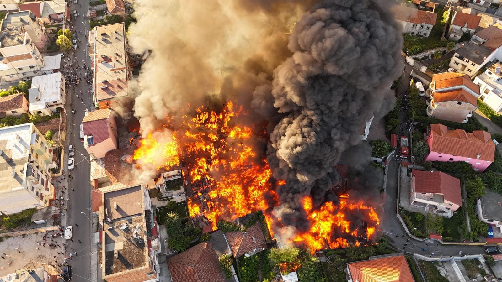 Shërbimet e Policisë po bëjnë evakuimin e banorëve nga banesat që rrezikohen nga zjarri. Zjarrfikësit po punojnë intensivisht për shuarjen e zjarrit Grupi hetimor nën drejtimin e Prokurorisë po punon për zbardhjen e shkakut të rënies së zjarrit.’, njofton policia.