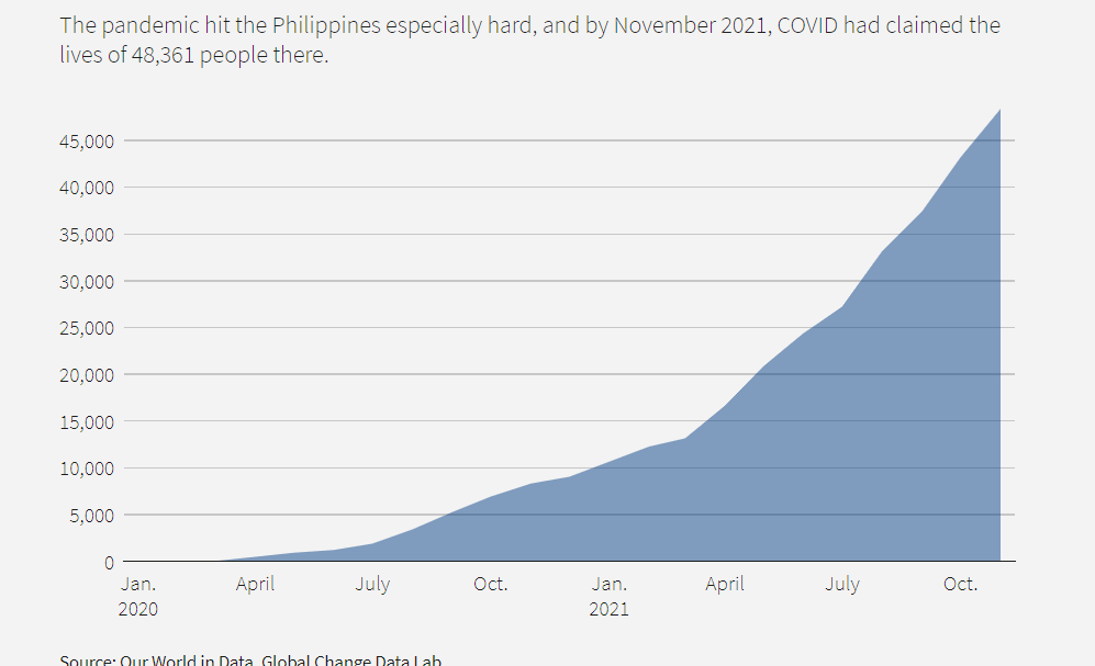 Në kohën kur foli Duterte, rastet e COVID tejkaluan 1.3 milion dhe pothuajse 24,000 filipinas kishin vdekur nga virusi. Vështirësia në vaksinimin e popullsisë kontribuoi në shkallën më të keqe të vdekjeve në rajon.