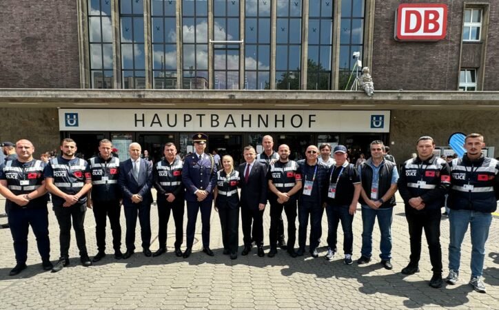 Taulant Balla gjatë qëndrimit në Dusseldorf në Gjermani, takoi nga afër punonjësit e Policisë së Shtetit të cilët në bashkëpunim me kolegët e tyre gjermanë janë duke u kujdesur për garantimin e sigurisë dhe rendit publik për mbarëvajtjen e Kampionatit Europian të Futbollit.