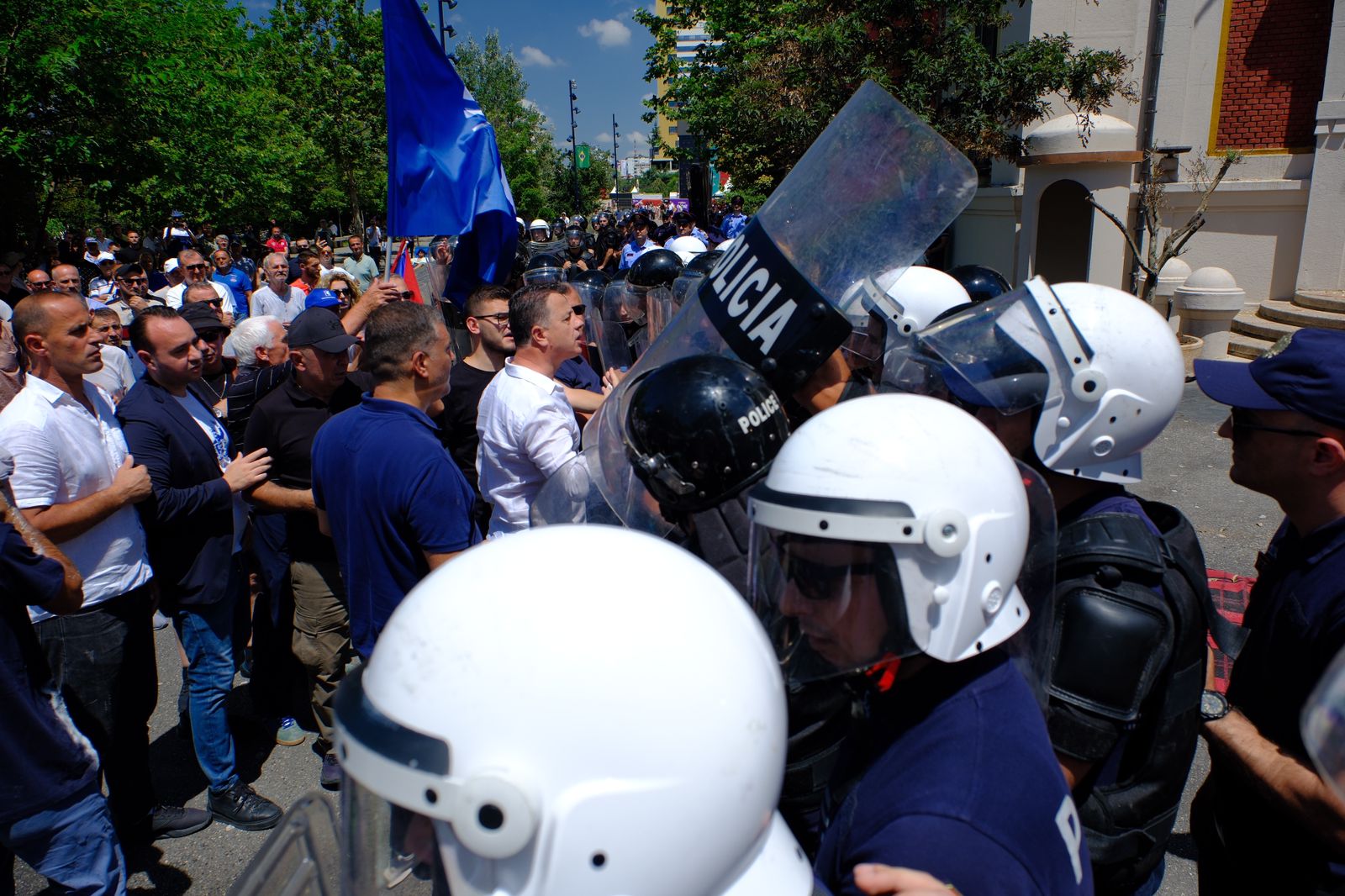 Protesta u shoqërua me tensione mes protestuesve dhe efektivëve të policisë, duke pasur edhe përplasje fizike.