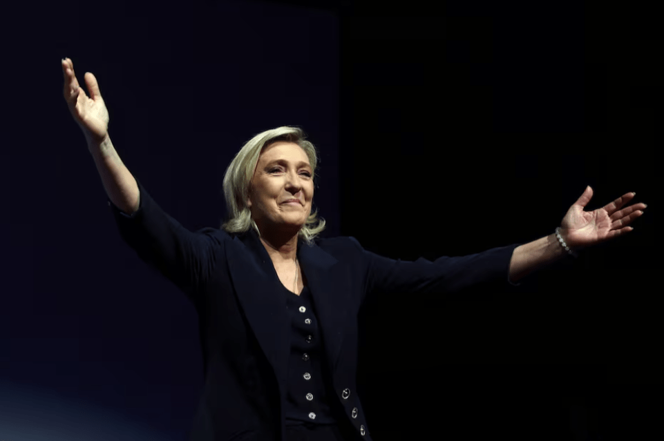 Kjo ishte përpara rivalëve të majtë dhe të qendrës, duke përfshirë aleancën Together të Presidentit Emmanuel Macron, blloku i së cilës u pa duke fituar 20.5%-23%. Fronti i Ri Popullor (NFP), një koalicion i krahut të majtë i mbledhur me ngut, parashikohej të fitonte rreth 29% të votave, treguan sondazhet.