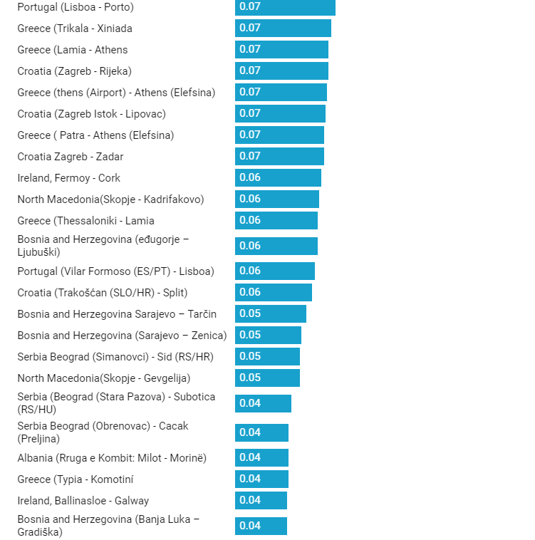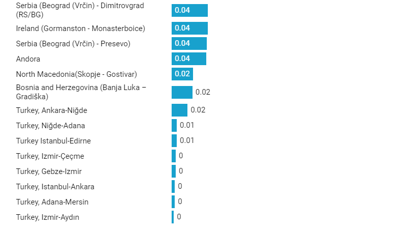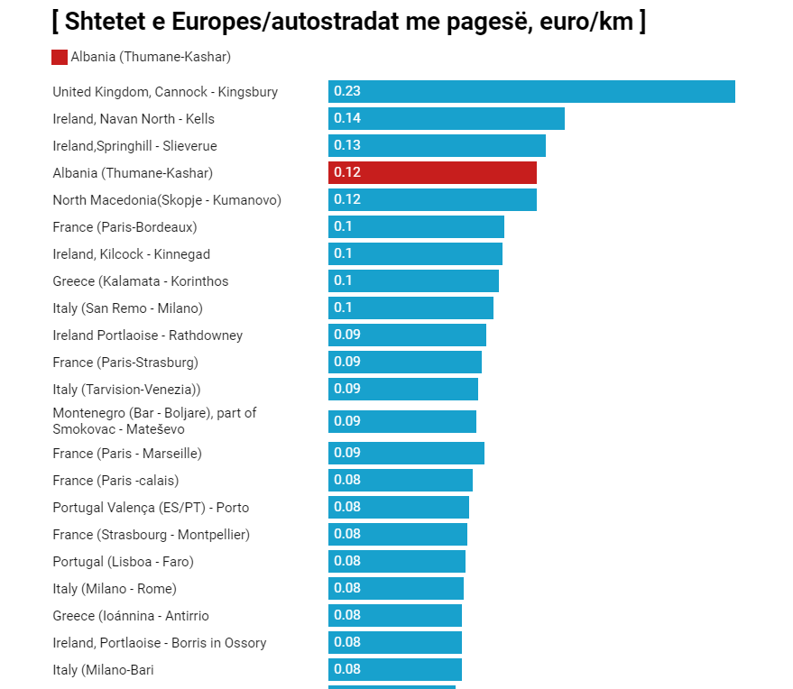 Të dhënat nga tarifat në autostradat me pagesë janë më të lartat në Britani, Francë dhe Itali, ndërsa më të lirat janë në Turqi, në Europën Lindore përgjithësisht në Rajonin e Ballkanit.