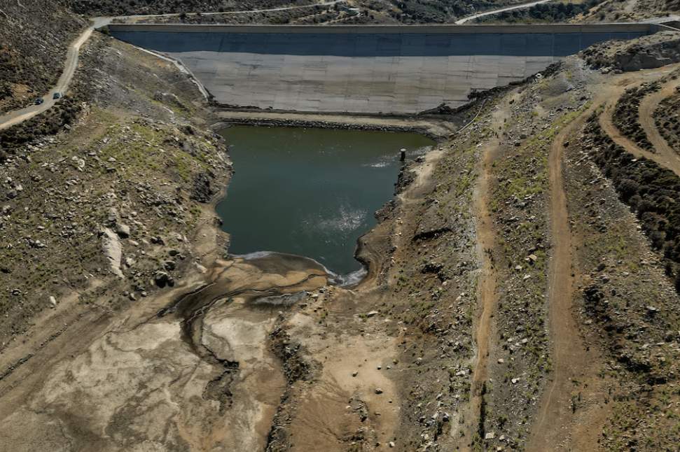 Rezervuari më i madh në ishullin grek të Naxos është tharë dhe në këtë gjendje është i dobishëm vetëm për breshkat që kalojnë në cekëtinat e tij me baltë. Në rrjedhën e poshtme, uji i detit ka depërtuar në puset e zbrazëta vaditëse, duke dëmtuar kulturat e çmuara të patates në ishull.