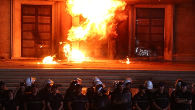 “Gjithashtu, këta specialistë, në vijim të veprimeve hetimore dhe procedurale të kryera për protestën e zhvilluar mbrëmjen e djeshme, referuan materialet në Prokurori ku nisi procedimi në gjendje të lirë për shtetasit R. D., 20 vjeç, M. P., 22 vjeç, S. L., 69 vjeç, B. Xh., 33 vjeç, A. L., 38 vjeç, B. Xh., 34 vjeç, D. P., 62 vjeç, dhe një 17-vjeçar. Këta shtetas dyshohet se gjatë protestës, kanë ushtruar veprime të dhunshme, kanë hedhur flakadanë dhe molotovë, në drejtim të kryeministrisë”, njofton policia.