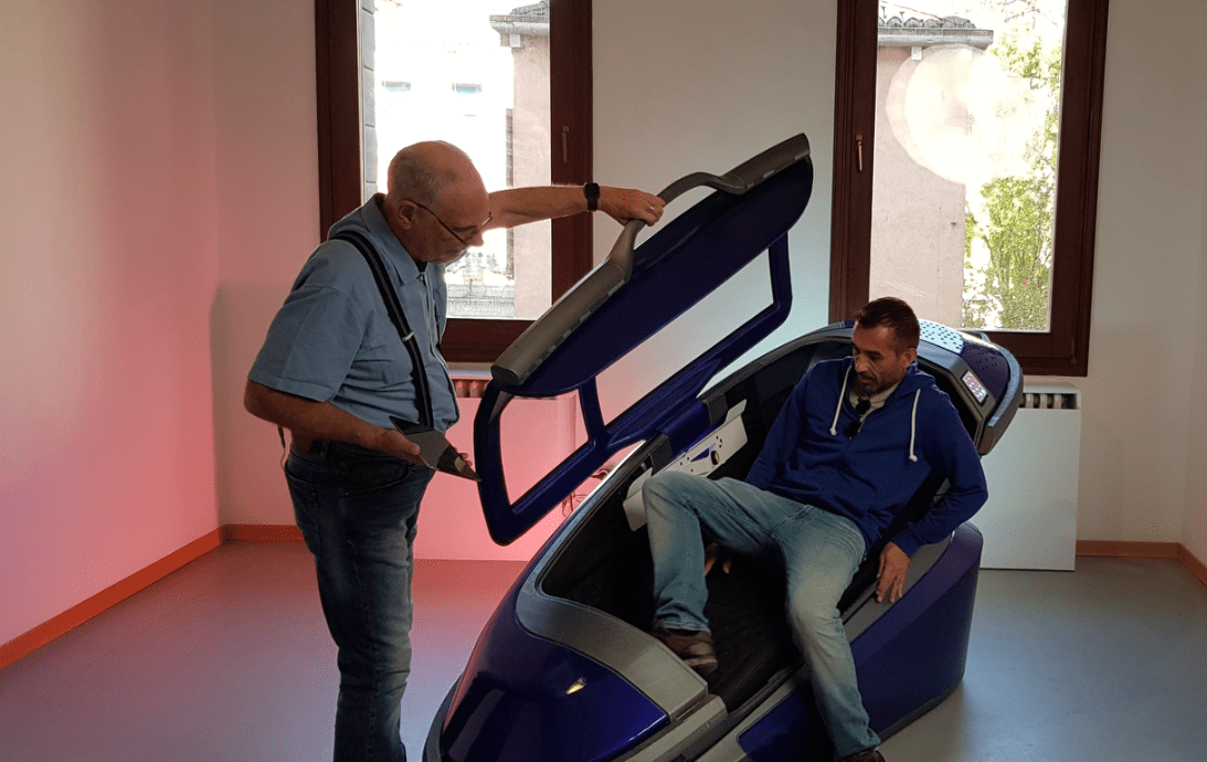 Aparati me pamje futuristike, i quajtur Sarco (shkurt për sarkofag), është projektuar që një person të hyjë në gropën si arkivol, të shtrihet dhe të shtypë një buton. Pajisja e printuar me 3D prodhon më pas një ulje të shpejtë të nivelit të oksigjenit, duke ruajtur një nivel të ulët CO2, duke siguruar kështu “kushtet për një vdekje paqësore, madje euforike”, sipas Exit Sëitzerland. Dizajni i podit kishte për qëllim të sugjeronte “një ndjenjë rasti: të udhëtimit në një “destinacion të ri”, thuhet në përshkrimin e pajisjes.