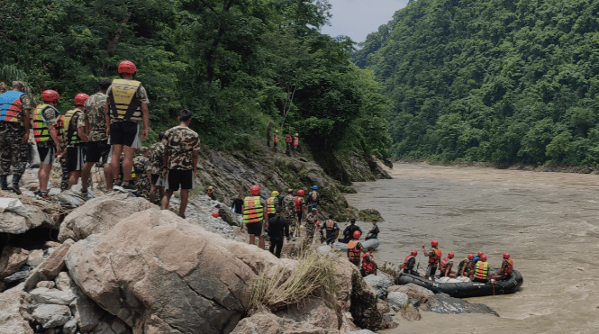 Megjithatë, askush nuk është shpëtuar që kur incidenti ndodhi para agimit të së premtes, kur dy autobusë pasagjerësh u futën në lumin Trishuli në rrethin Chitwan, rreth 86 kilometra (53 milje) në perëndim të kryeqytetit Katmandu, pasi u goditën nga një rrëshqitje dheu. .