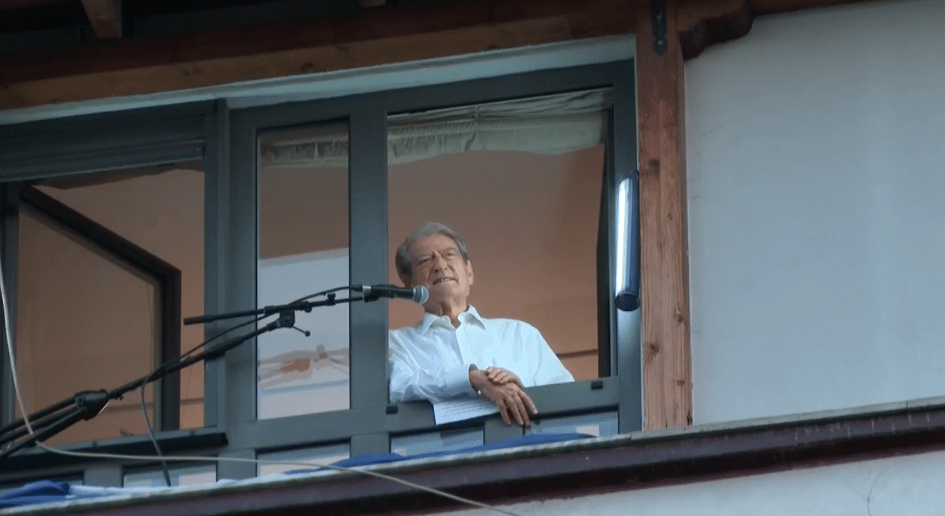 Kryetari i Partisë Demokratike, Sali Berisha, gjatë fjalës së tij nga dritarja e banesës, është shprehur para protestuesve se goja e tij nuk do të mbyllet kurrë pa mbrojtur interesat e shqiptarëve.