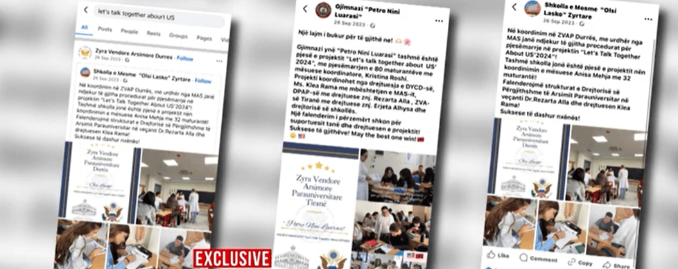 “Kërkojmë që maturantët e të gjitha shkollave të arsimit publik shqiptar të plotësojnë dokumentin për shprehje interesi në projektin ‘Let’s talk together about US’2024’. Projekti synon informimin për studime në Shtetet e Bashkuara, por edhe zhvillimin e aktiviteteve me fokus informimin duke u argëtuar. Projekti mbështetet nga Departamenti Amerikan i Shtetit dhe drejtohet nga zyra e DYCD në New York City. Me anë të formularëve të cilët me lejen tuaj do të plotësohen nga maturantët në të gjithë Shqipërinë, ne do të bëjmë kalkulimin dhe detajet e projektit, duke nisur nga kostot financiare që do mbulohen nga ne, udhëtimet e një sërë aktivitetesh të tjera, projekti do të depozitohet nëpërmjet Ambasadës Amerikane në Shqipëri pasi të miratohet nga zyra përgjegjëse e departamentit. Tani kërkojmë lejen tuaj për të nisur bisedimet me Zyrat vendore arsimore dhe më pas me titullarët e shkollave. Shpresoj të kem një përgjigje sa më të shpejtë pozitive, pasi jam pak e vonuar me procedurat”.