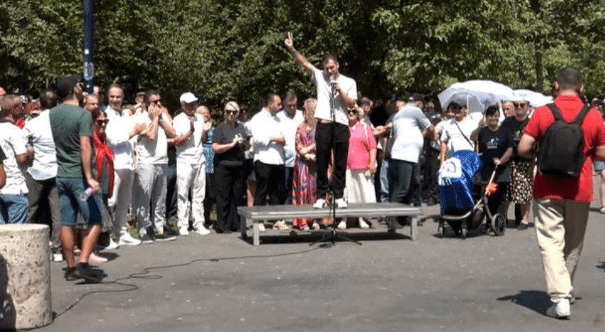 Protestuesit denoncojnë korrupsionin dhe skandalet e ndodhura në këtë institucion, duke shprehur vendosmërinë e tyre për të larguar Veliajn nga pushteti dhe për të sjellë përpara drejtësisë.