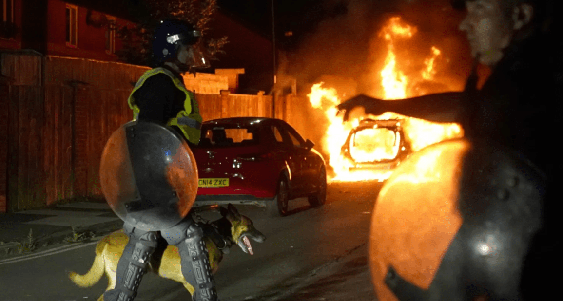 Oficerët e policisë së Merseyside u qëlluan gjithashtu me tulla dhe një furgon policie u dogj.