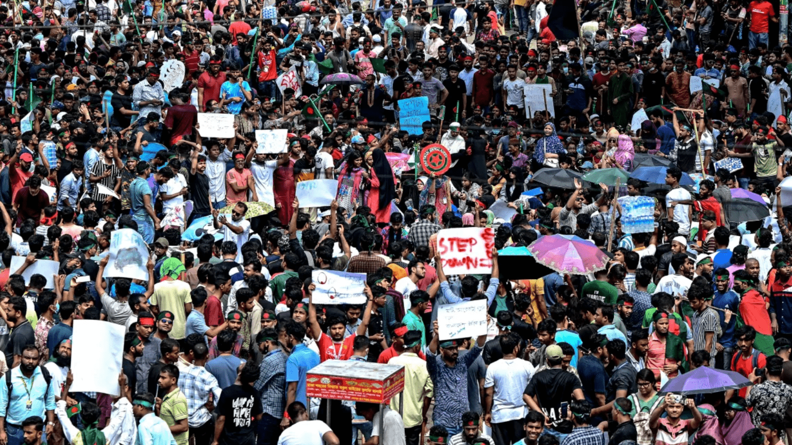 Të paktën 91 persona u vranë dhe qindra u plagosën të dielën në përleshjet mes policisë dhe protestuesve që kërkonin heqjen e kuotave për vendet e punës në qeveri dhe dorëheqjen e kryeministrit. Kundërshtarët thonë se kuotat e punës në shërbimin civil janë diskriminuese.