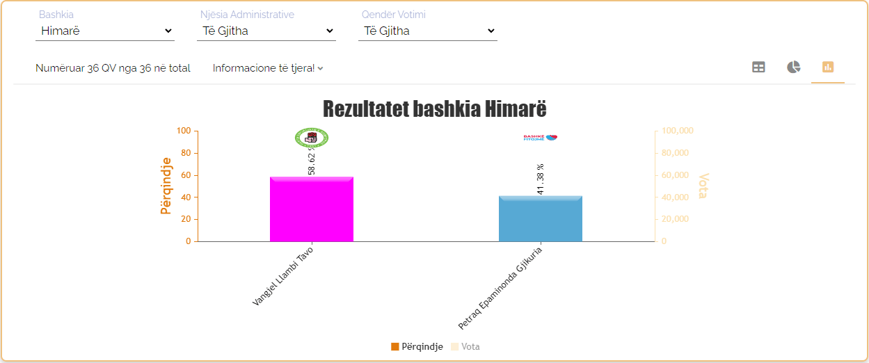 Siç paraqesin dhe shifrat e KQZ-së, nga 36 kuti, Tavo ka fituar me 58.62 % të votave.