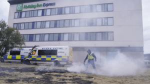 Holiday Inn Express në Rotherham, një hotel që është përdorur nga qeveria britanike për të strehuar azilkërkuesit, është përfshirë nga protstat e dhunshme të dielën. Ndërsa ky hotel ka pasur protesta të mëparshme, banorët e Rotherham thonë se nuk kanë përjetuar ndonjëherë një agresion të tillë. Rebelët kanë vënë flakën një ndërtese ku brenda saj ndodheshin më shumë se 200 njerëz.