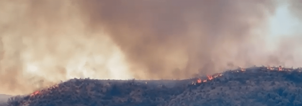 Një zjarr me përmasa të mëdha ka shpërthyer në fshatin Finiq dhe është përhapur komplet në faqen e malit drejt parkut arkeologjik të Finiqit, në Sarandë.