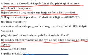 Vendimi i Gjykates Kushtetuese lidhur me punen e e detyruar te studenteve te mjeksise pas mbarimit te universitetit, i shpallur ne 4 mars 2024 ne Fletoren Zyrtare, kerkonte qe brenda tre muajve, pra brenda 4 qershorit, Kuvendi te bente ndryshimet ne ligj.