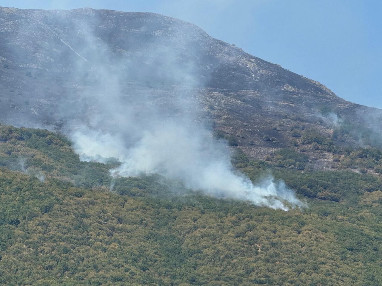 Nuk është shuar ende zjarri në Malin e Thatë në Pogradec.