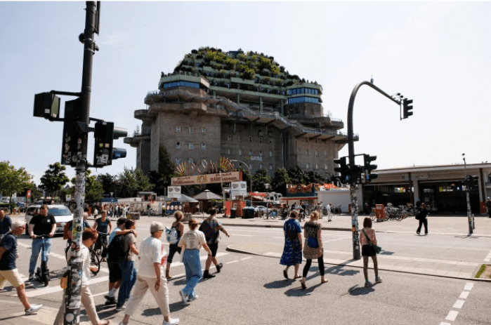 Bunkeri i rilindur i Hamburgut tani është i mbushur me dy restorante, një hotel “Hard Rock” pesëkatësh dhe një bar dhe kopsht të sapondërtuar në çati si piramida nga i cili gjelbërimi rrjedh me bollëk mbi fasadën e betonit.
