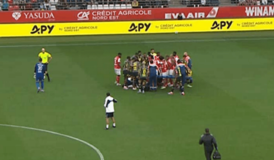 Angel Gomes i Lille u rrëzua në fushë pas një përplasje të ashpër me Amadou Koné të Reims.
