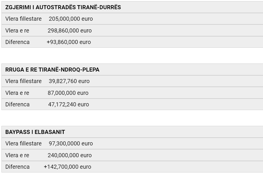 Faturë dyfish me të shtrenjtë ka edhe rruga Tiranë-Ndroq-Plepa që do mund të shërbejë si rrugë alternative për autostradën Tiranë-Durrës. Kostoja fillestare e ndërhyrjes ka qenë 39.8 milionë euro ndërsa pas rishikimit ajo ka shkuar në 87 milionë euro.