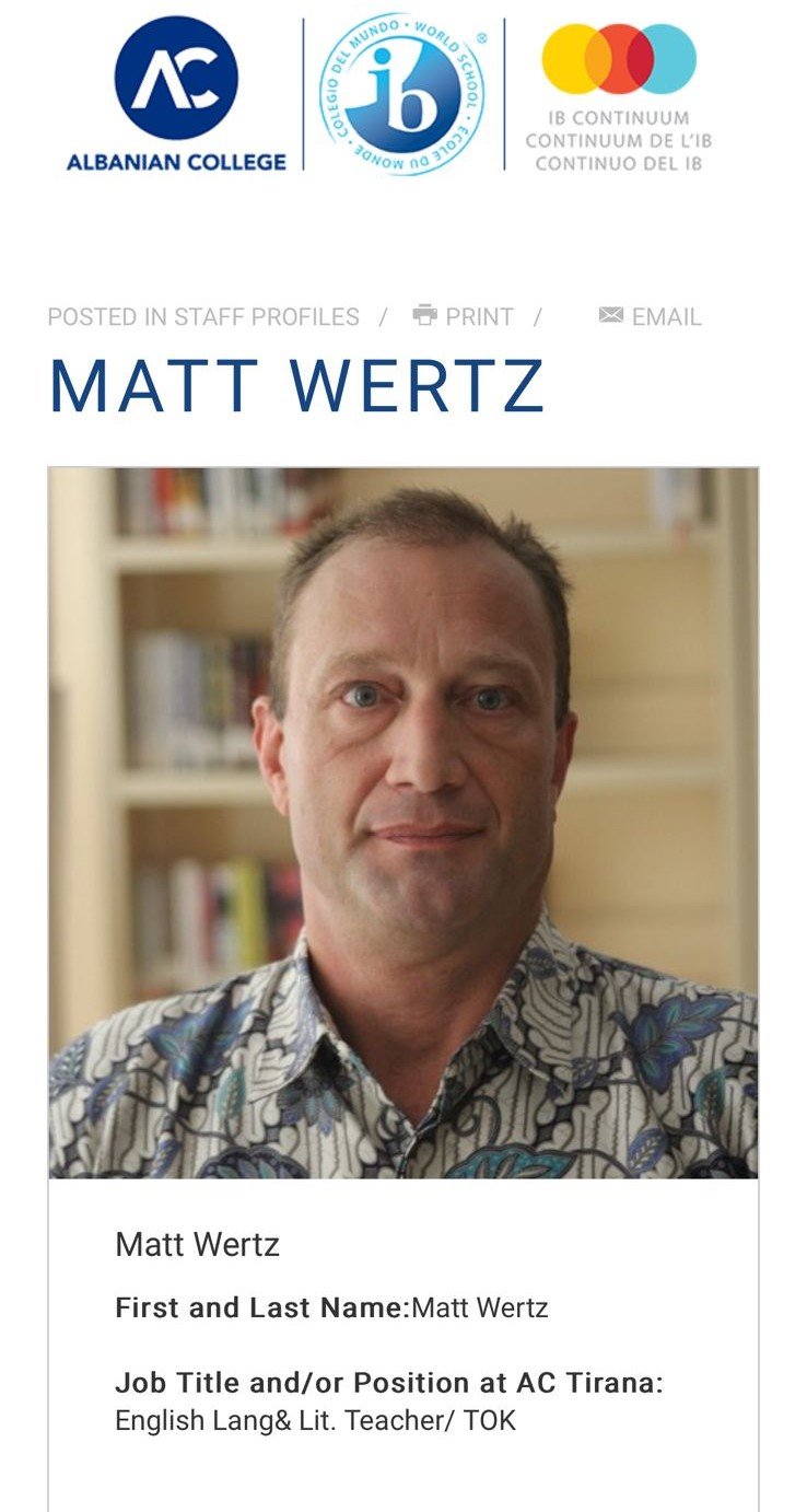 Mathew James Werts ishte mësues në “Albania College” dhe jetonte në një shtëpi private në zonën e Treshit.