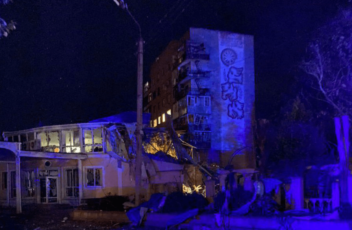 Zyrtarët lokalë thanë se hoteli ishte goditur me një raketë balistike ruse Iskander-M, duke i lënë gazetarët me lëndime nga shpërthimi, tronditje dhe prerje në trup.