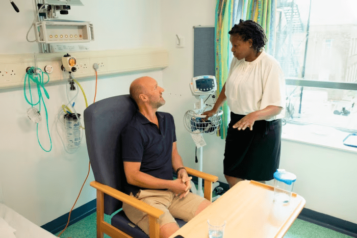 Steve Haycock merr pjesë në një provë të vaksinës së kancerit në spitalin Queen Elizabeth në Birmingham, Britani