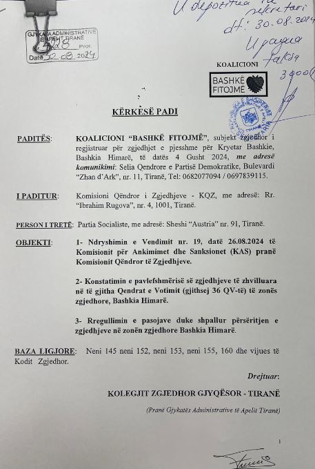 “Bashkë Fitojmë” çon në Kolegjin Zgjedhor zgjedhjet në Himarë, kërkon ndryshimin e vendimit të KAS