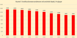 Nga viti shkollor 2012-2013 në vitin shkollor 2021-2022 janë mbyllur 295 shkolla të arsimit 9-vjeçar në të gjithë vendin duke e çuar numrin total të tyre Në 1051 nga 1346 që ishte në vitin 2013.