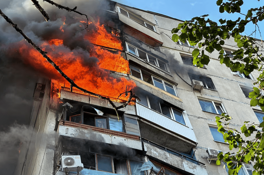 Pallati 12-katësh shpërtheu në flakë si pasojë e sulmit, tha kryebashkiaku. Numri i të vdekurve nga sulmi u rrit në shtatë kur trupi i një gruaje u nxor nga rrënojat, shtoi ai në një deklaratë të mëvonshme.
