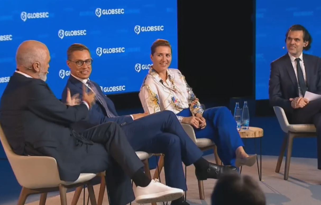 Kryeministri Edi Rama, në Forumin e sigurisë GLOBSEC 2024, ishte në Panelin e diskutimit me Kryeministren e Danimarkës Mette Frederiksen dhe Presidentin e Finlandës, Alexander Stubb, moderuar nga gazetari i njohur i Ali Aslan.