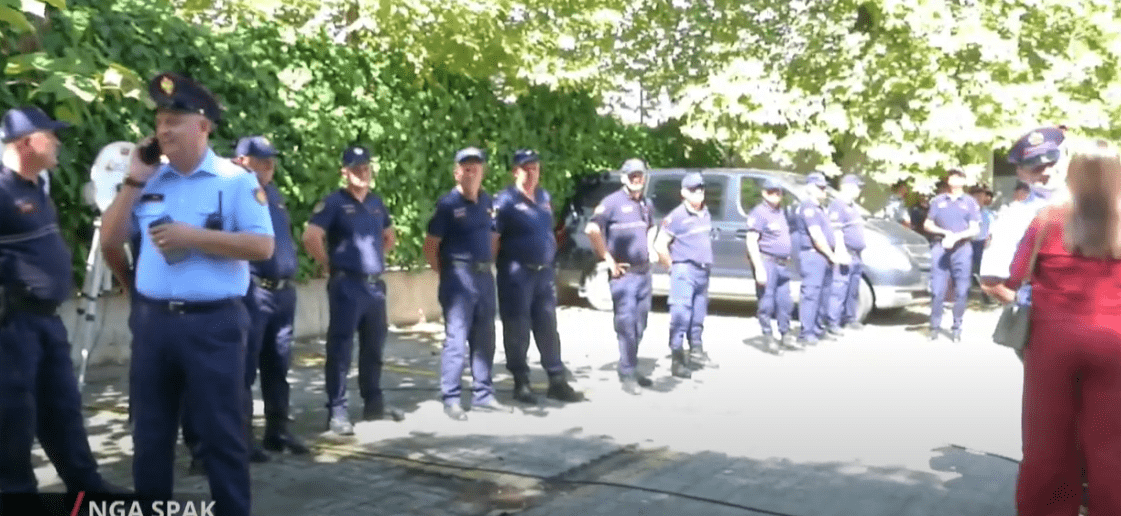 Forca të shumta policie janë mbledhur para godinës së SPAK-ut ku ish-kryeministri Berisha e dhëndri i tij Malltezi do mësojnë akuzën lidhur me çështjen për të cilën po hetohen, privatizimin e mjediseve të ish-klubit Partizani.