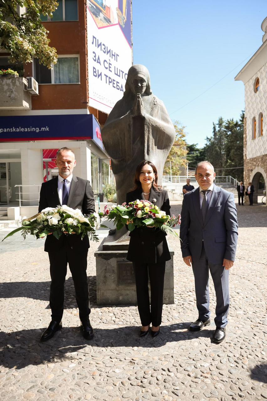“Nuk mund të vija në Shkup dhe të mos ndaloja për të vendosur një buqetë me lule në Shtëpinë Përkujtimore të Nënë Terezës, shenjtores sonë, bijës më të shquar të kombit shqiptar që i përket të gjithë botës.”, u shpreh Spiropali.