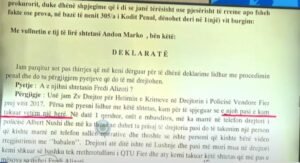 “Kanë bërë deklarime të rreme para akuzës dhe kjo është vepër penale. Zyrtari i Policisë së Fierit, Albert Nushi u pyet për Fred Alizotin.