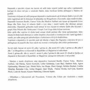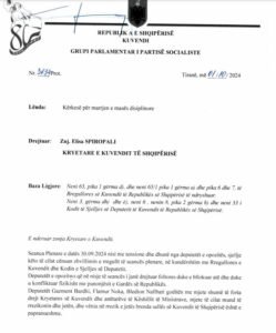 Ju njoftoj se me anë të shkresës nr. 3634 prot, datë 1.10.2024 të Grupit Parlamentar të Partisë Socialiste, është paraqitur kërkesa për marrje mase disiplinore ndaj 24 deputetëve: