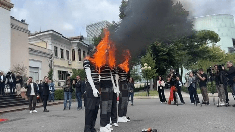 Nga brenda, kryetarja e Kuvendit Spiropali dënoi veprimet e demokratëve, ndërsa jashtë Noka e deputetët e tjerë demokratë i vunë flakën katër manekinëve me fotot e kryeministrit Rama, të vëllait, Olsi, ish-ministrit Xhafaj e të vëllait Agron (Geron) Xhafaj.